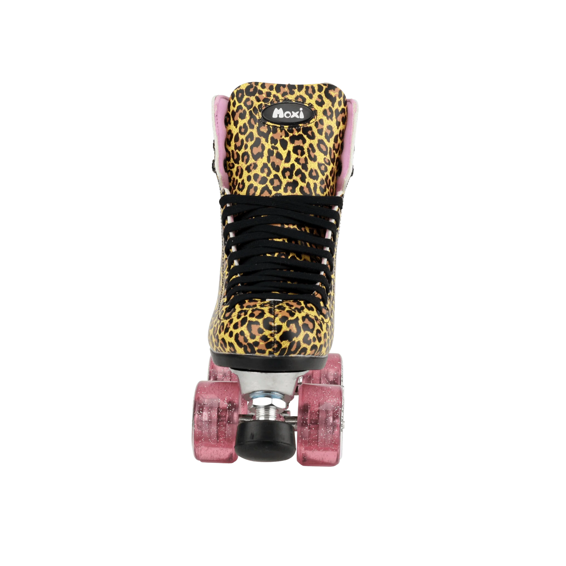 First of all, function meets fashion. The Moxi boot features a stunning leopard print that's 100% animal-friendly, with a super comfortable rolled collar that improves the overall range of motion, and an impressive pink liner made from moisture-wicking Dri-Lex™ to keep your feet cool under pressure. Secondly, the strong metal hooks allow for tight lacing to keep you secure, and the glorious Moxi glitter wheels are made from high rebound urethane in a smaller size, improving your agility whether dancing or dashing through tight turns. Additionally, an adjustable toe stop means you can find the perfect placement, meaning you never come up short. Finally, Moxi roller skates are built with skaters in mind, so you can feel confident that nothing will slow your roll!